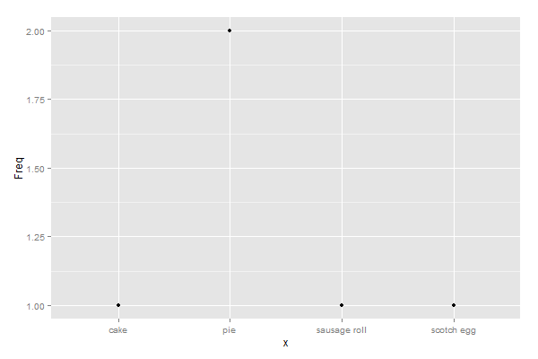 ggplot(dat, aes(x, Freq)) + geom_point()