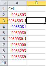If InStr(1, ThisWorkbook.ActiveSheet.Cells(i, 1).Text, "-", vbTextCompare) > 0 Then