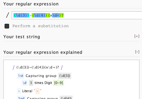 请参阅regex101.com,它包括一个测试人员和解释程序。