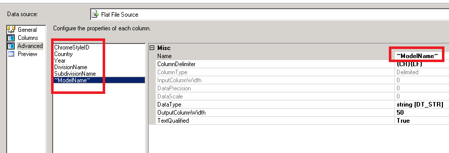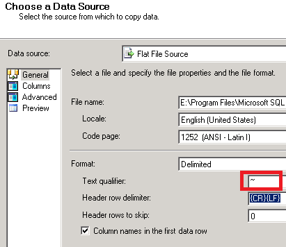 在导入/导出屏幕上,确保将"~“指定为文本限定符。选中“第一个数据行中的列名”框。