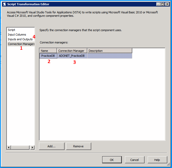 和ADO.NET目标。脚本组件将涉及以下配置。