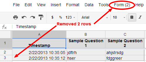 Google已经创建了一个新的表单编辑器(几周前刚刚发布)。这个新的表单编辑器有一个选项“删除所有响应”。因此,一种选择是在新的表单编辑器中重新创建表单。(从新的电子表格中,单击Tools > Create )。