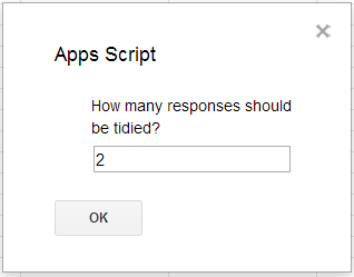 thisMany = Browser.inputBox("How many responses should be tidied?");