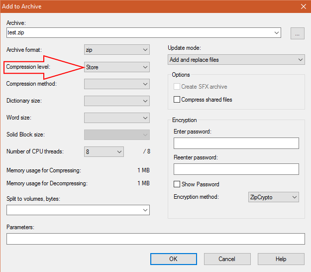 每个ZIP实用程序都应该有某种压缩级别选项。