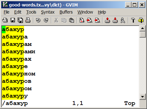 我正在编辑一个文本文件中的字典,其中包含俄语单词--每行一个单词。