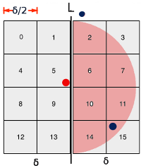 如果我们把红点和右半边的比较,右边的点应该在阴影的半圆中。我已经试过把极端的放在蓝色里了。但是,它们之间的距离是5-(-2)|+1=8,5-15 x+1= 11。