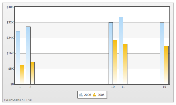 </chart>但是,如果要绘制列,则需要插入空白的category节点来模拟。