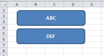 End Sub5.测试,在工作表上有以下形状并分配上述宏,单击任何形状后,我们将移动到工作簿中的ABC或范围。