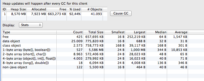 那么,你有什么建议吗?我觉得奇怪的是,我的记忆在一开始就已经使用了90%。而且,为了满足我的需要,我的堆不能增加一点,