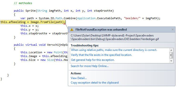 FileNotFoundException是未处理的beelden/Verdediger.gif