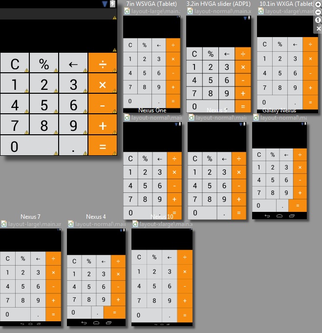 我正在努力使我的计算器应用程序与所有类型的屏幕兼容。这些是我的布局文件夹: