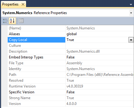 要解决这个问题,可以添加对System.Numerics的引用,然后将其属性Copy Local设置为true。