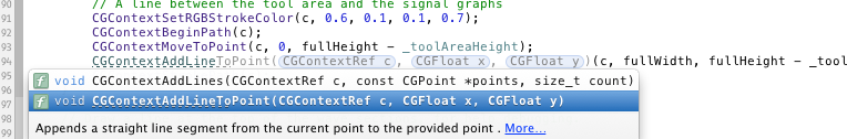 我想将第二个MoveToPoint更改为AddLineToPoint,所以我删除了部分名称,并为Show命令点击了control + space。我得到的东西是: