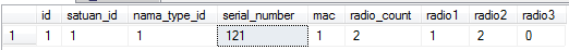 您的表违反了数据库规范化的规则。将这些值放入三个单独的列中并不是最好的设计。相反,您应该有一个EquipmentRadio