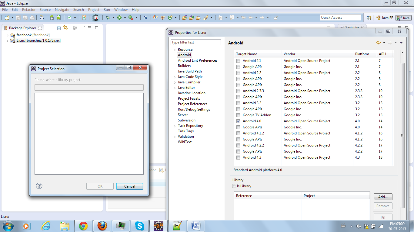 对于安卓应用程序构建路径添加了facebook库项目,但是这里没有突出显示将screenshot.Please外观放在项目选择上,window.Facebook没有提前向.help me表示感谢。