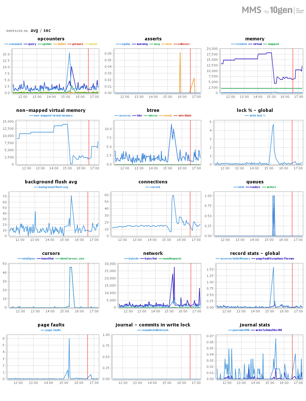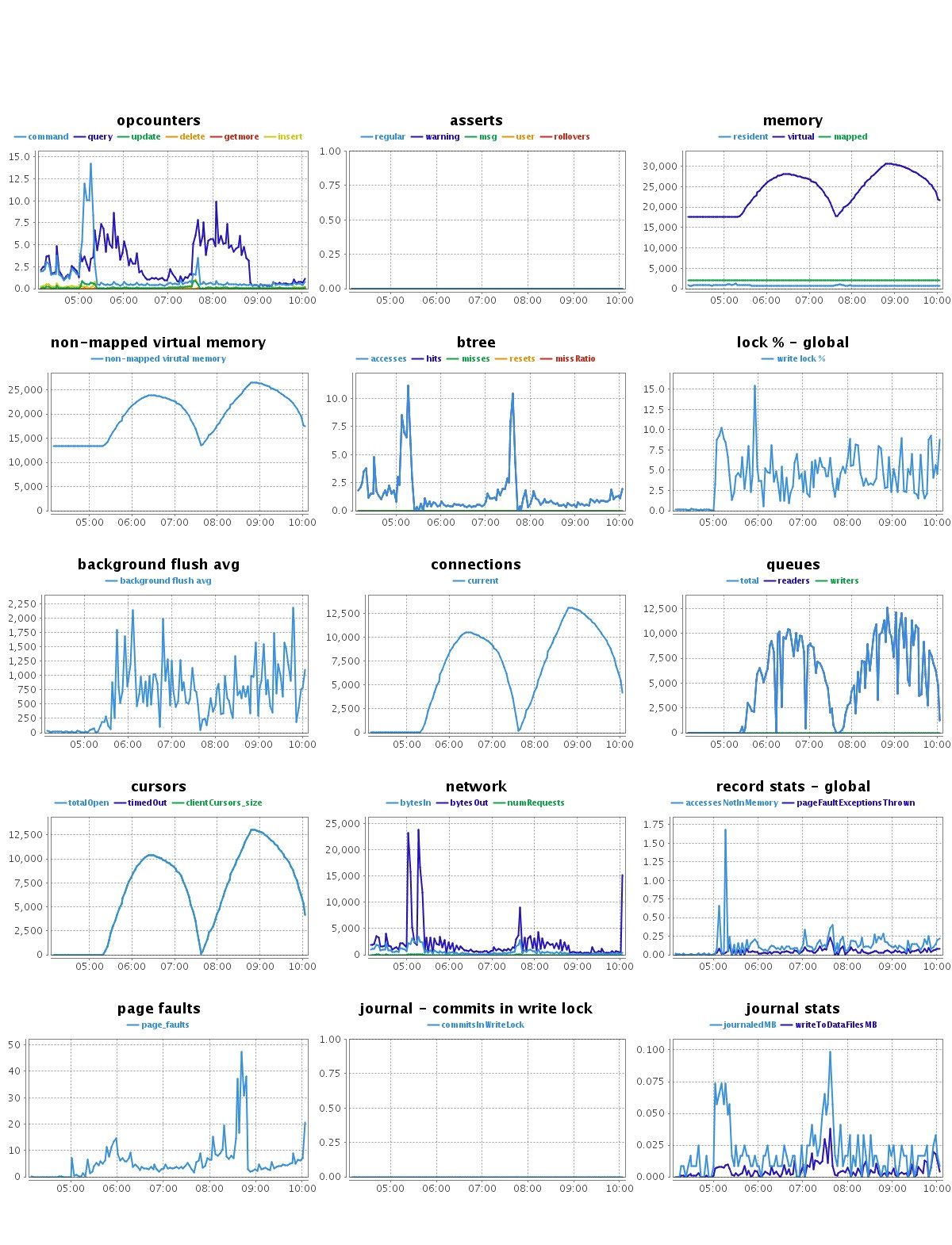 1.观察到大量连接和游标(13k): - fix:确保您的连接池是合适的。对于报告和当前的请求率,最多只需要几个连接。另外,我猜您有一个m1small实例,这意味着您只有一个核心。