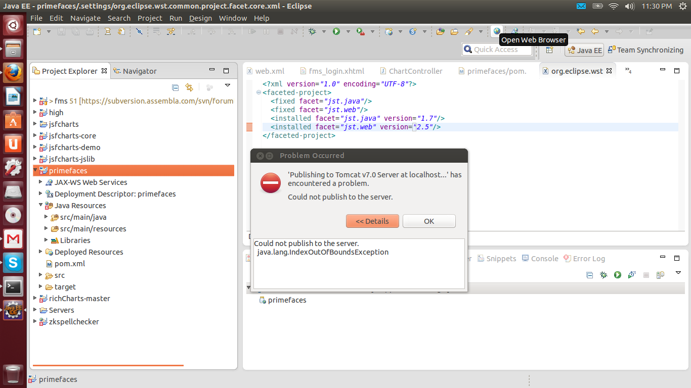Could not publish to the server.java.lang.IndexOutOfBoundsException技术