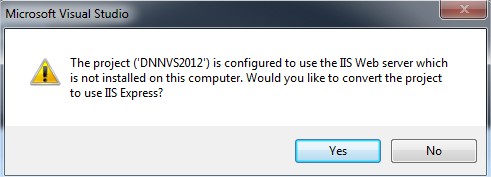 这是第一个(我不认为它是阻塞的):(“该项目('DNNVS2012')被配置为使用IIS服务器.”)