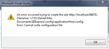 然后,我得到第二个错误:“创建站点http://[...] applicationHost.config错误:无法写入配置文件时出错”。