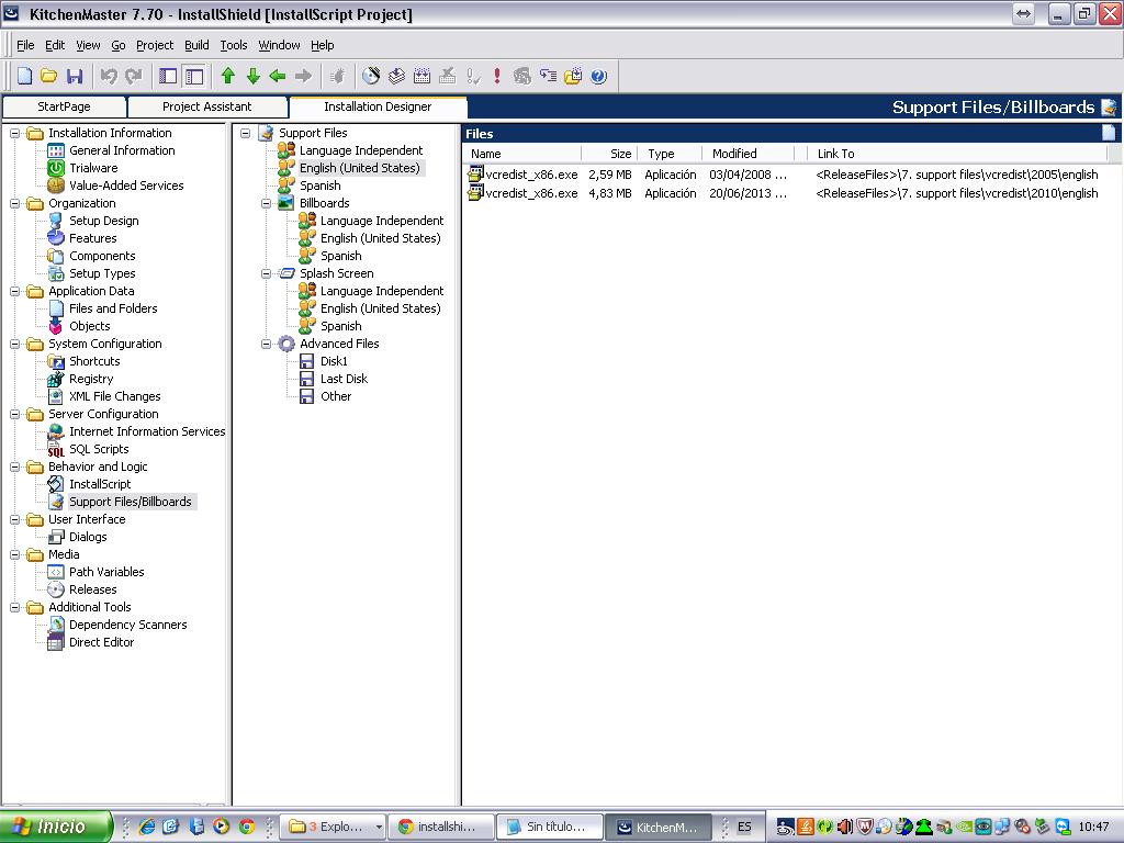 作为先决条件,我需要执行microsoft 2005和2010可再发行版。我在Suport files /广告牌部分中添加了这两个文件: