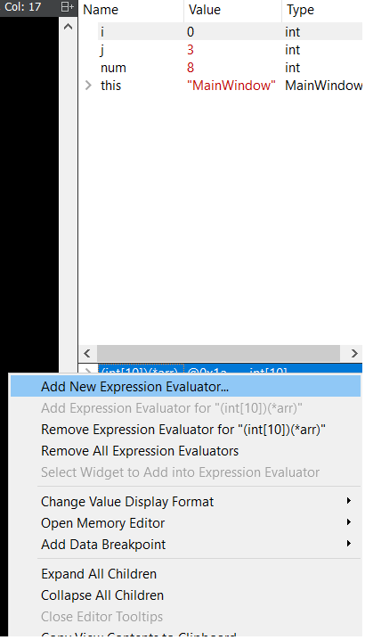 int array[20] 您可以在此表单中手动添加“watch”:
