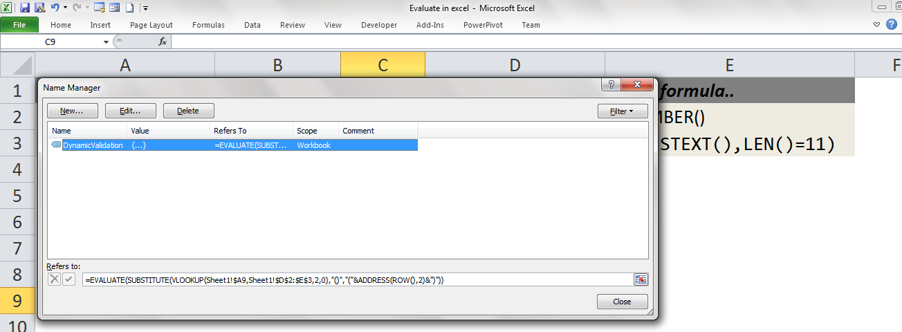 然后,如果我们定义一个名称,DynamicValidation如下: