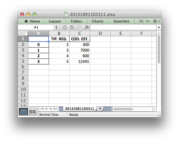 df.columns = ['TIP. REG.', 'COD. EST.']