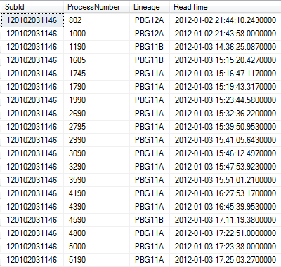 (Select SubId, ProcessNumber, ReadTime From MyTable) as SourceTable