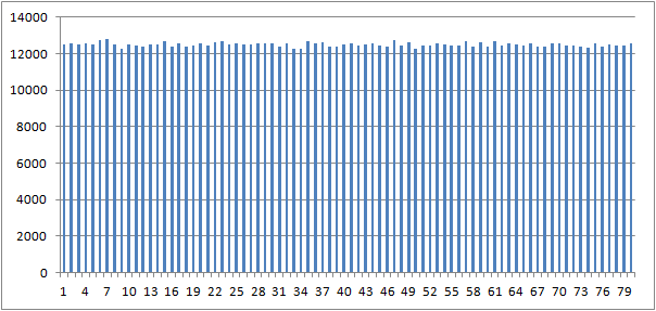 使用与我的第一个答案相同的测试工具,经验概率质量如下所示: