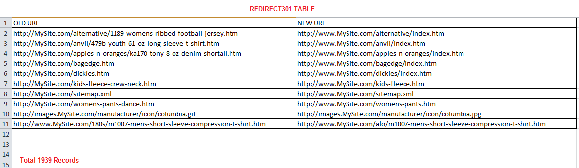 Select NewURL from Redirec301 where contains(OLDURL,"http://www.MySite.Com/OLD-URL")