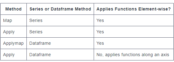 我看到map是一个Series方法,而其余的是DataFrame方法。不过,我对apply和applymap方法感到困惑。为什么我们有两种将函数应用于DataFrame的方法?再次,简单的例子,说明使用将是很棒的!