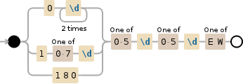 (?:0\d{2}|1[0-7]\d|180)(?:[0-5]\d)(?:[0-5]\d)[EW]