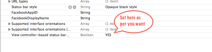 1)如果您的应用程序是基于视图控制器的,那么必须将其设置为app.plist文件,如下所示: