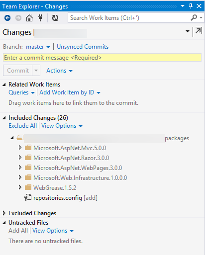 如果您是一个经验丰富的Git用户,您可能已经注意到Visual处理的更改与命令提示符不同。 ,您可能想知道“包含的更改”部分是否包含阶段性的更改。 实际上,Visual通常会为您绕过Git阶段。在提交更改时,Visual同时分阶段并提交它们为。 当您将文件添加到Git存储库时,会出现一个异常;Visual确实进行了这种更改。