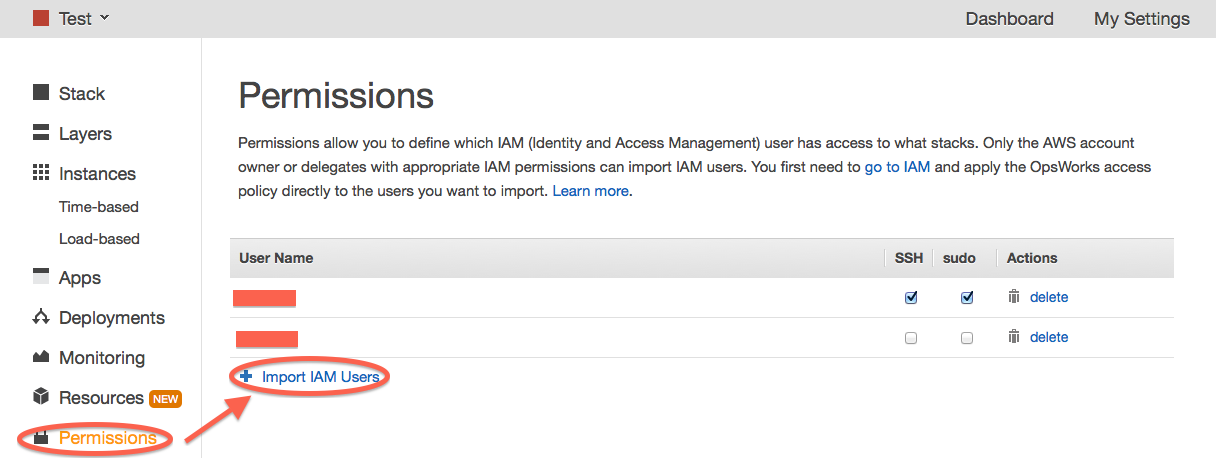 要开始授予您的用户访问OpsWorks或导入IAM用户的权限: