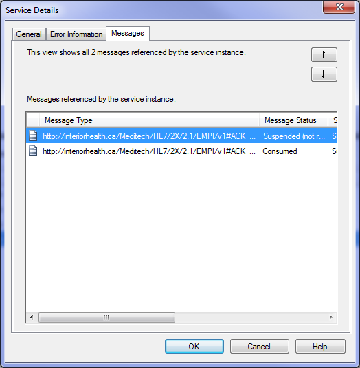 如果我查看服务详细信息对话框中的messages选项卡,就会看到两条消息,它们都是ACK_24_GLO_DEF类型的。