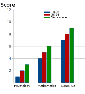 我得到的数据分组的方式,我需要,与每个字段的得分平均值-年龄对。问题是,我找不到一种简单的方法,从y轴对应于所获得的分数,x轴对应于每对的值中得到一个条形图。