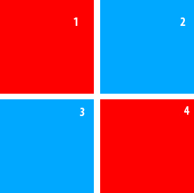 div:nth-child(4n+2), div:nth-child(4n+3) { background: blue; }