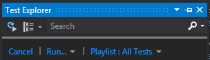 很抱歉唤醒了一条旧的线索:)只是想在这里分享我的解决方案,我在VS 2015上也有同样的问题。在搜索输入下面有一些文本显示了cancel应该出现的位置(请看一下@Codeman打印屏幕),文本实际上是关于如何为您的测试建立一个构建的一些描述,文本有几行,最后您只需按它,然后就会出现cancel按钮:)非常奇怪的bug,对不起,我没有一些打印屏幕,希望它能帮助某人。