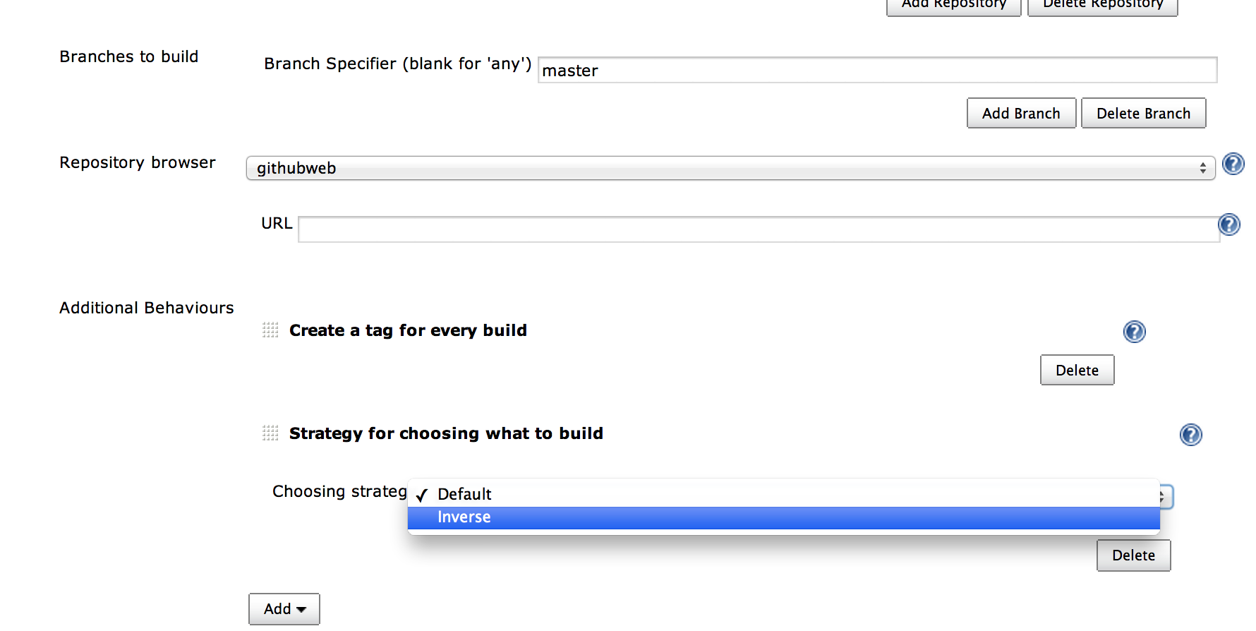 您可以选择“反向”策略来针对要构建的分支。