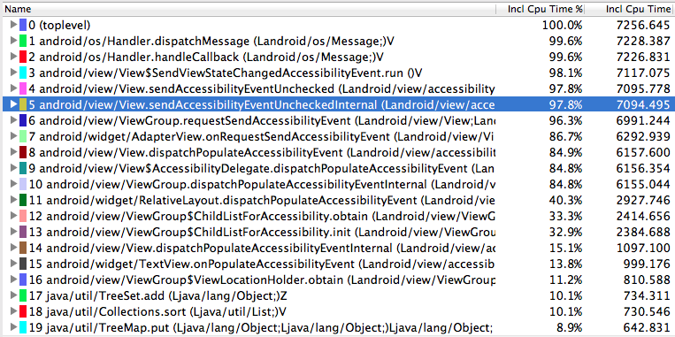 我运行了TraceView,使用onPageScrollStateChanged(int state)