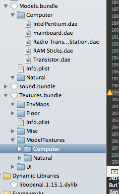 我编写了类以获取包的类别(文件夹)中的文件路径,该路径返回正确的路径。即使Xcode也可以正确地获取文件,并正确加载相同的COLLADA文件,甚至可以识别纹理包中的图像:
