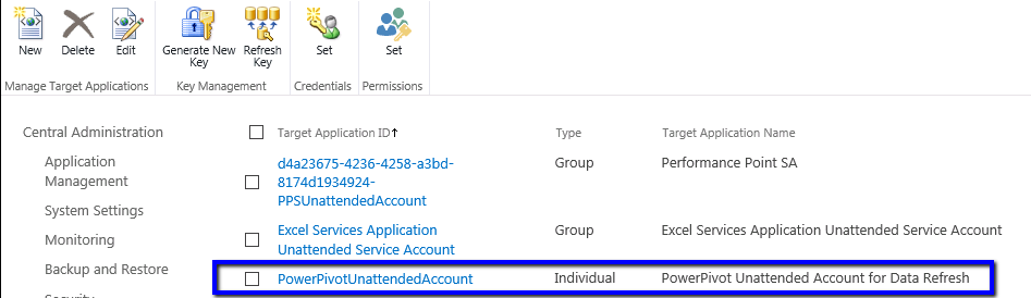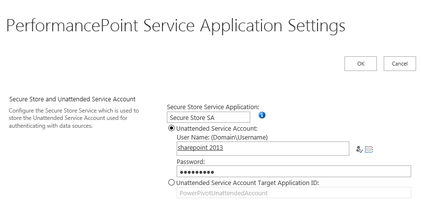 未设置PerformancePoint服务无人值守服务帐户。该设置位于SharePoint中心管理页面下的“管理服务应用程序”中。
