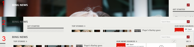 见下图。显示屏幕的最上面的部分。图片1-3显示当页面已经向右滚动和必应新闻标题已经改变颜色,一旦它不再在图像上。