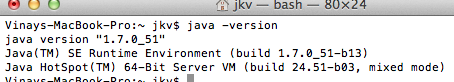 下载java 7并安装后(按照链接中的注释之一),再次签入终端给我新版本