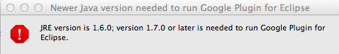 因此,我将安装eclipse 开普勒的最新版本,并按照链接安装插件。在安装完一些不同的问题并重新启动EclipseKepler之后,它向我展示了java版本错误。