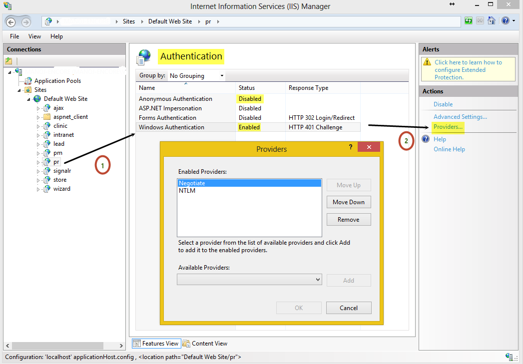 (2)即使将NTLM设置为顶级提供程序而不是Kerberos (在IIS中),IIS仍将请求窗口凭据。快照显示了如何做到这一点。