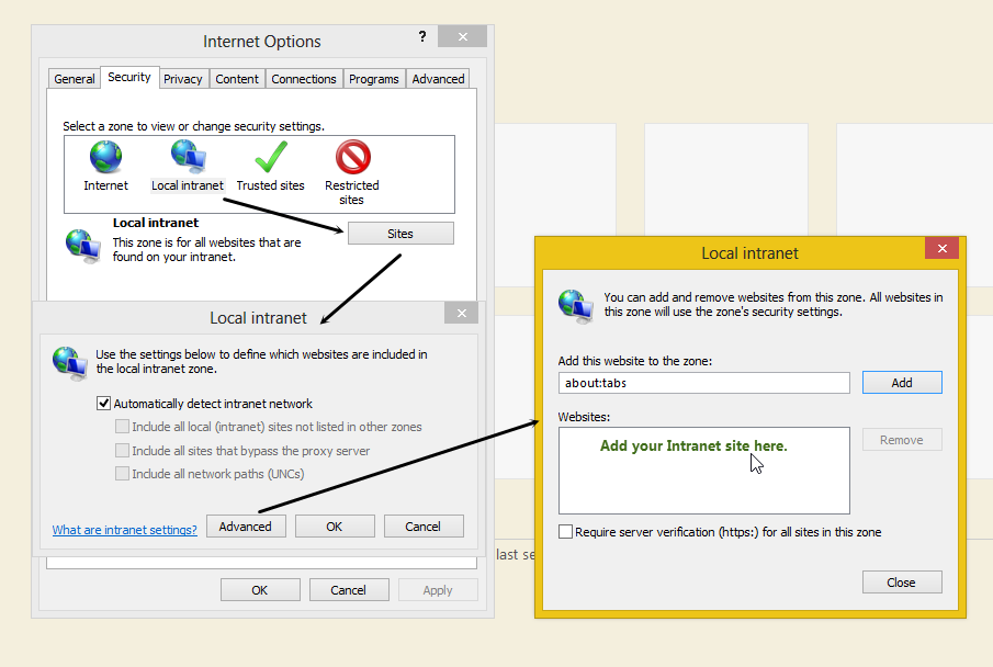 (b)将站点添加到本地Intranet专区,以便浏览器将登录用户名和密码发送到。