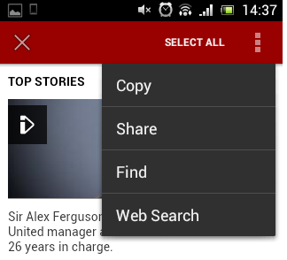 android:textIsSelectable="true"当我选择文本视图时,我得到了下面的屏幕。