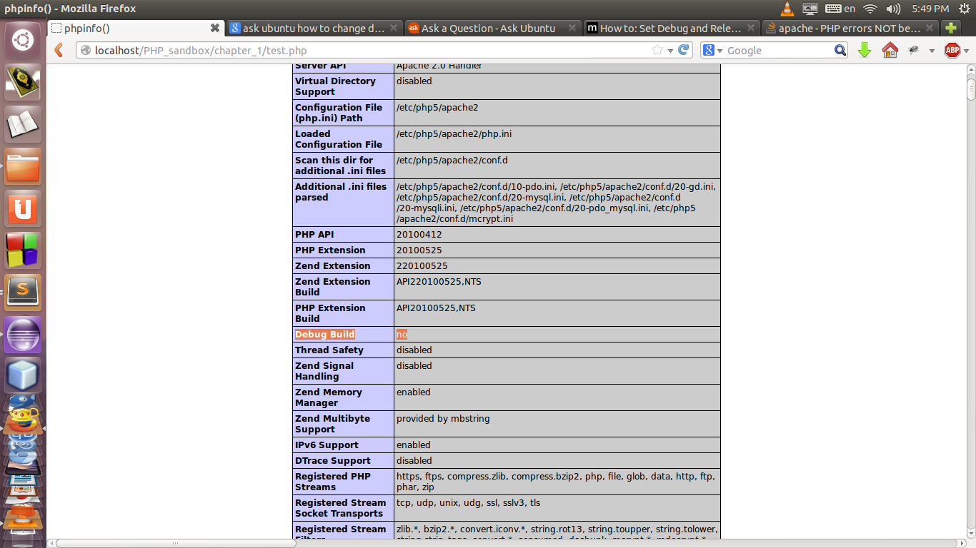 如何在lamp堆栈环境中将Debug构建更改为On?
